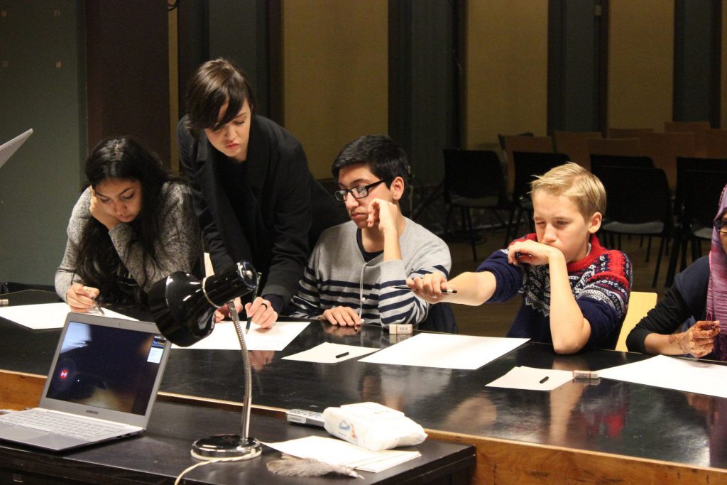Det neste verkstedet under VISUALIZE IT gikk i en annen sal av Deichmanske Bibliotek og var veldig koselig. Denne dagen lærte ungdommene om å tegne og skissere.