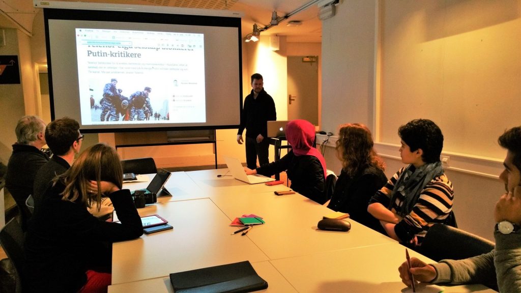 Etterpå, sammen med professor Vaagan, forklarte Øystein til ungdom forskjellige teknikker som en journalist kan godt bruke i sitt arbeid. Det for eksempel finnes nettsider hvor man kan få informasjon om bedrifter, deres sjefer, lønn og mange viktige opplysninger.