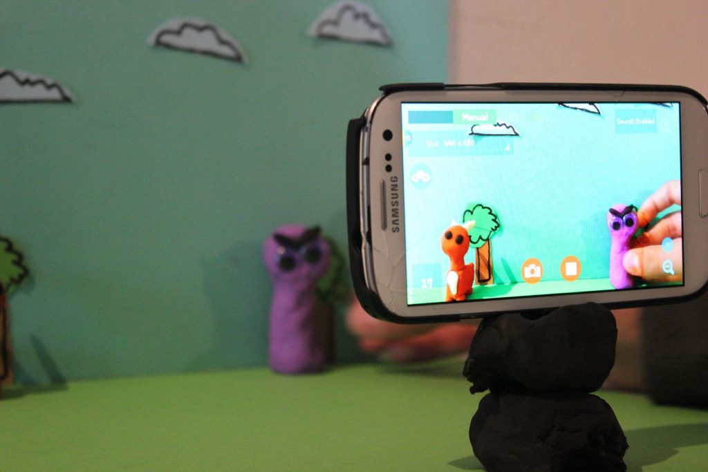 Stop-motion videoer kan lages i en mobilapp Stop Motion Studio. Veldig enkelt og gøy. Først jobbet ungdommene med å lage manuser og leirfigurer for sine filmer. Etterpå begynte de å ta bilde for bilde. Det var et ganske hardt arbeid, men i løpet av 2 timer klarte alle å ta rundt 100 bilder, som ble til en film.